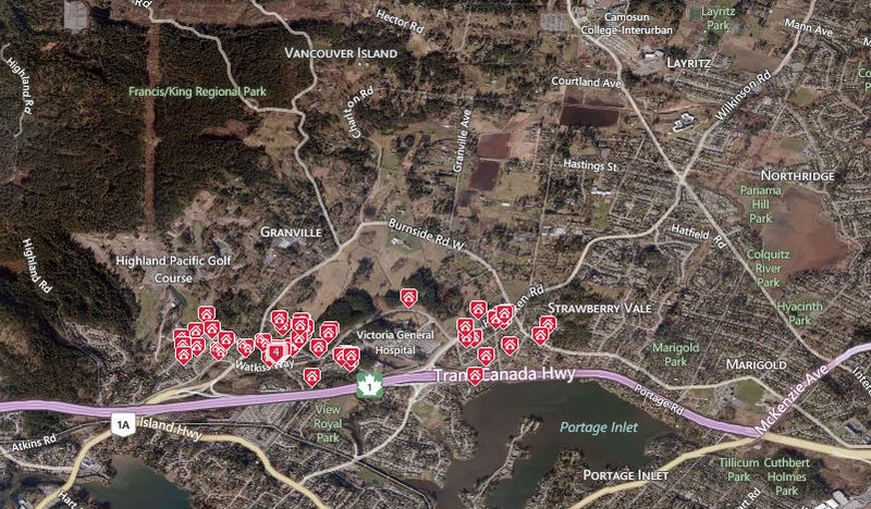 The town of View Royal was incorporated in 1988 and encompasses 1,007 hectares (2,488 acres) of land and 253 hectares (626 acres) of foreshore and land covered by water. View Royal lies at the doorstep of Greater Victoria's urban core and adjacent to the established municipalities of Esquimalt and Saanich.