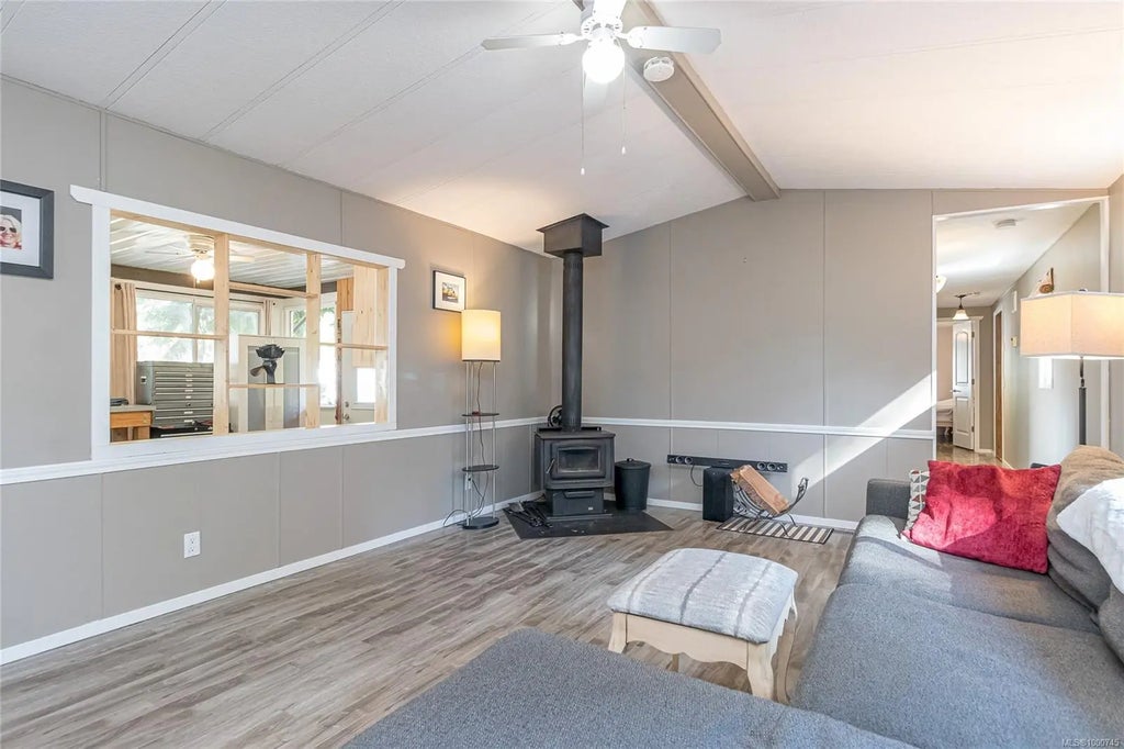 Welcome to Seabreeze MHP! This charming 2-Bed+Den, 2-Bath home with extensive decks has a lot to offer! Featuring an open functional layout, 1300+sqft thoughtfully updated living space reflects pride of ownership. A new roof with leaf guard gutters; reinforced beams/stands; vinyl windows, insulation & range hood; hot/cold hose bibs, updated plumbing with new hot water tank,drain pan & washer, are just a few examples of the many updates that add to the homes appeal & functionality. New paint, WETT-certified wood stove (easily heats the entire home) & updated flooring add comfort and efficiency. Outside,enjoy your lovely garden with fruit trees & cedar strawberry patch.Bonus: detached workshop with power and improved woodshed-perfect for hobbyist & offers additional storage! Quiet,Private near ocean, yet close to Southgate Mall, Country Grocer, various amenities, trails & bus. Pet friendly! Well-maintained by onsite park manager. You rancher-like living in this great 55+community awaits!
