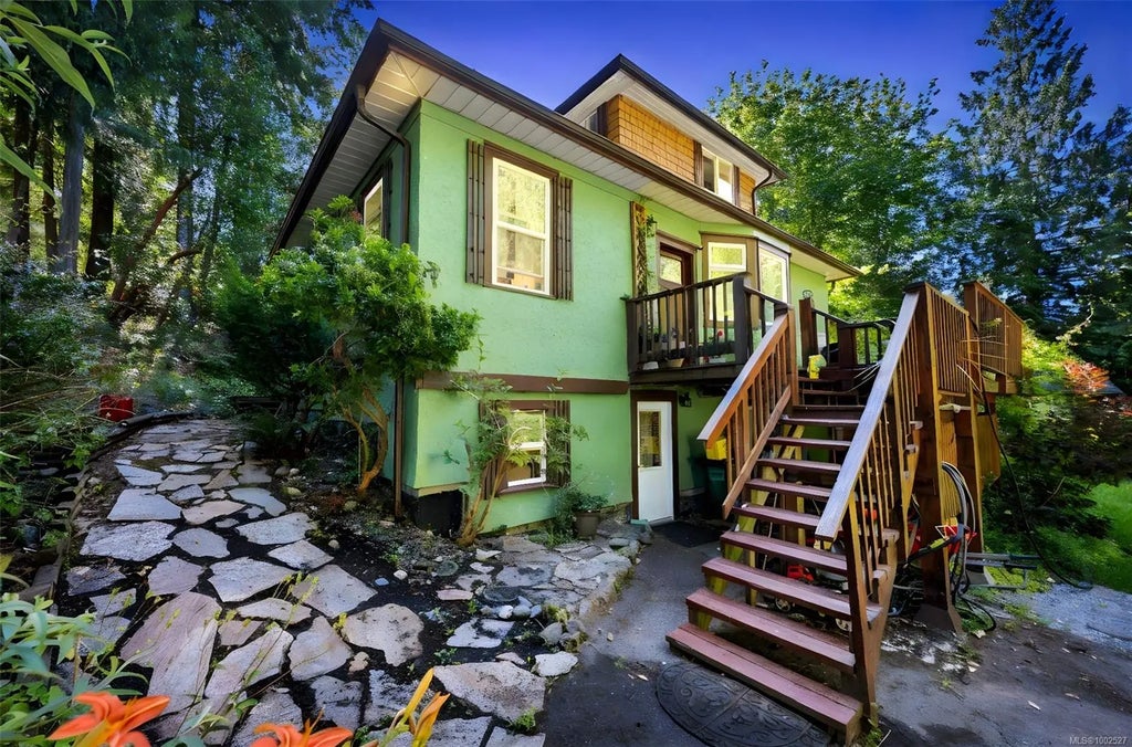 Discover the timeless charm of this 1930s heritage home, beautifully situated on a private half-acre just a short walk from Shawnigan Lake Village. The main floor offers two spacious bedrooms, a four-piece bathroom, and an open-concept kitchen, living, and flex space that creates a welcoming environment for daily living and entertaining. Upstairs, a versatile loft can serve as a primary suite with its own cozy ensuite. The lower level features a fully self-contained studio suite, ideal for guests, extended family, or generating rental income. Outside, enjoy stunning tiered gardens that provide privacy and year-round color, an expansive wrap around deck looking over the yard and forest, perfect for relaxing or entertaining, and a large detached workshop offering ample space for hobbies or storage. With excellent renovation potential, this home is ready for the right person to bring it back to life. Don’t miss this unique opportunity—schedule your private viewing today!