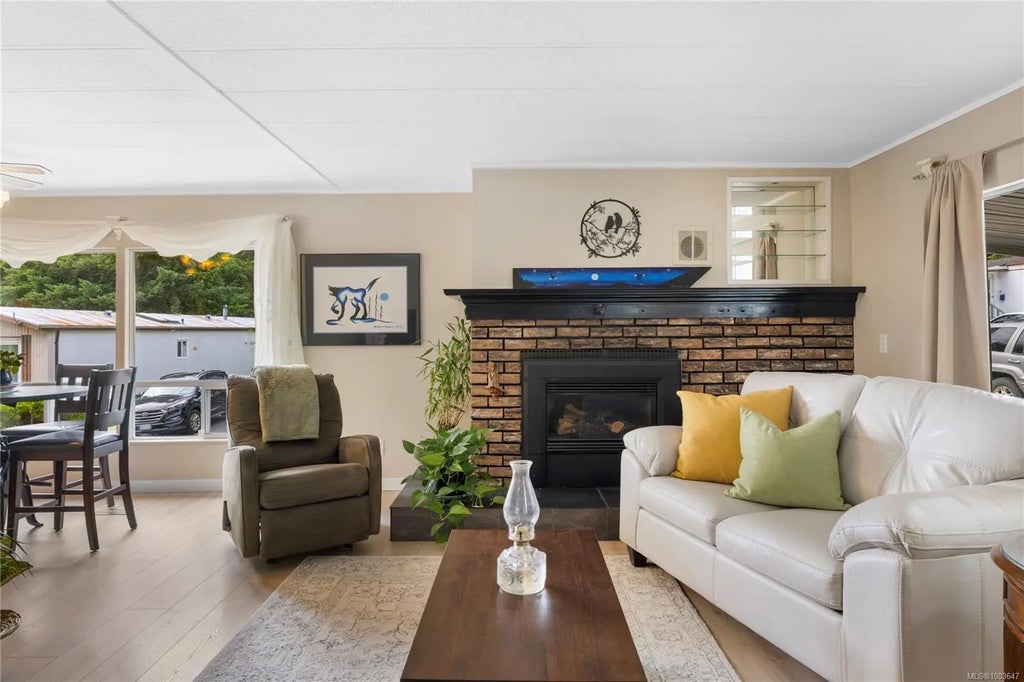 This Bright & cheery 1566 sq ft DOUBLE-WIDE mobile home is located in the highly sought after SCHOONER BAY MANOR MANUFACTURED HOME PARK. A well-maintained 55+ park in Nanoose Bay! This 3 bedroom & 2 bathroom home features an open-concept layout with a semi-separate formal dining & living area, plus a cozy fireplace (natural gas hookup available) and two living spaces. The fully fenced backyard is one of the largest in the park. Perfect for gardening or relaxing with raised beds, a detached shop/shed ideal for garden tools, extra storage space or your favourite hobbies. A double-wide carport offers parking for up to 3 vehicles. Just a 2-minute walk to Red Gap Centre for groceries, pharmacy, post office & more. Pet-friendly with park approval. Excellent value, space & location. Book your showing today! All measurements are approximate. Please verify if important.