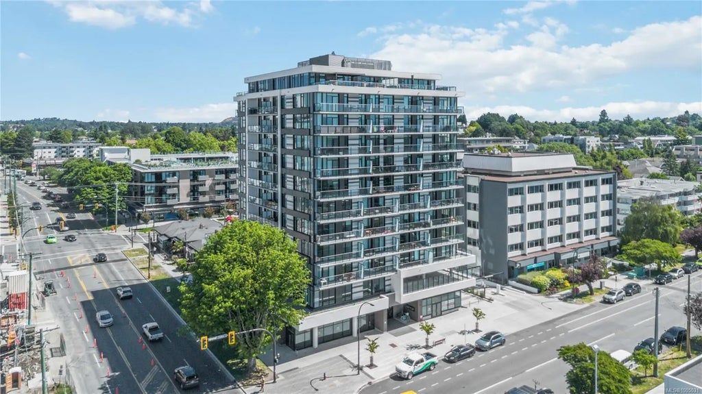 Welcome to Nest by Chard, a 2024 built 1 bed, 1 bath home in Victoria’s vibrant Harris Green neighbourhood. This 3rd floor unit offers an open-concept layout with large windows for abundant natural light and a spacious 400 sq/ft balcony with city views! The chef-inspired kitchen features sleek European cabinetry, solid quartz countertops and backsplash, and a fully integrated Fisher & Paykel appliance package. The bathroom includes a deep soaker tub, heated floors, and terrazzo-inspired porcelain tiles. Enjoy year-round comfort with in-suite A/C and a continuous fresh air supply system. Thoughtful touches like large entry storage, in-suite laundry and slim roller blinds add convenience. Building amenities include car and e-bike share programs, a fitness facility, dog wash station, children's play area, and secured bike locker and storage. Just steps to restaurants, cafes, shopping, entertainment, parks and beaches with a 94 walk score—perfect for urban professionals.