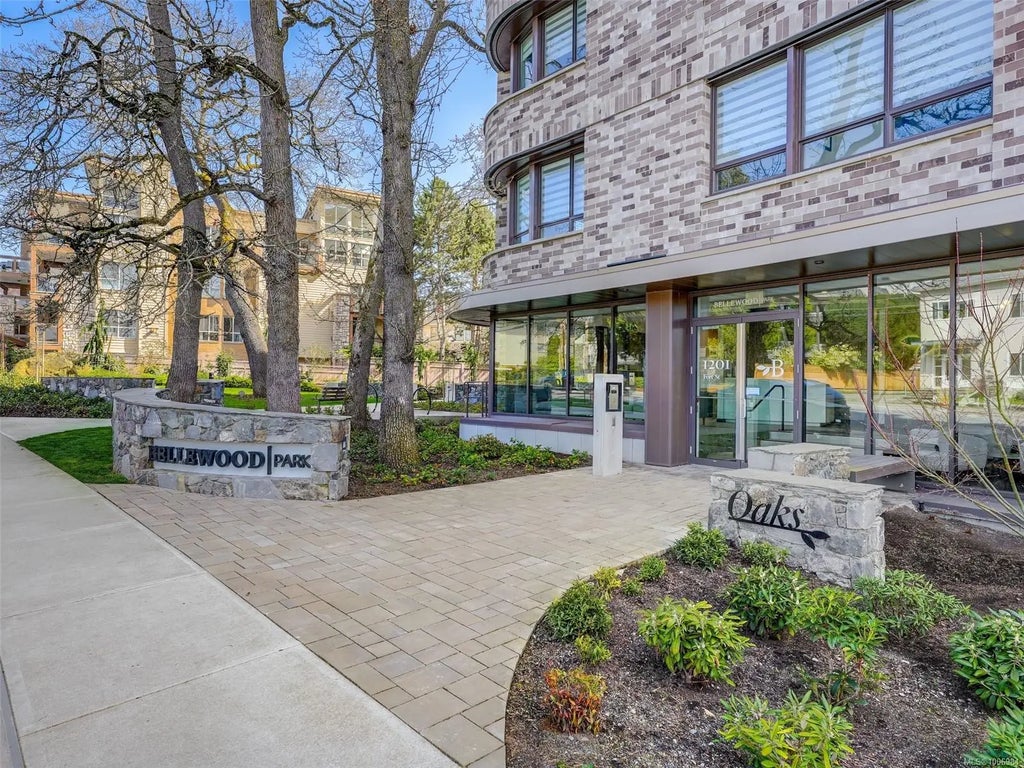 NEW PRICE! Welcome to The Oaks, the Bellewood Park development known for concrete & steel construction and luxurious living. Built by Abstract Developments in 2021, each unit is built for quiet & comfort with triple glazed windows, air conditioning & 9 ft ceilings. This exceptional condo has a lovely primary bedroom with spa like ensuite, an office / den with built-in murphy bed for guests, PLUS a 2nd BATHROOM. Beautiful lighting fixtures, custom cabinetry, fireplace & wood floors. Chef's dream kitchen with Wolf gas range, Fisher & Paykel double drawer dishwasher & panelled French door fridge. Balcony with built-in heater & gas for BBQs. Find a lovey common room with outdoor patio nestled in gardens and Garry Oak trees. Secure underground parking, storage locker, bike & kayak areas. Pets allowed! Walk to Downtown restaurants, Cook St Village & Dallas Road to take in ocean views & biking paths. Embrace the Victoria lifestyle with a quick possession possible!