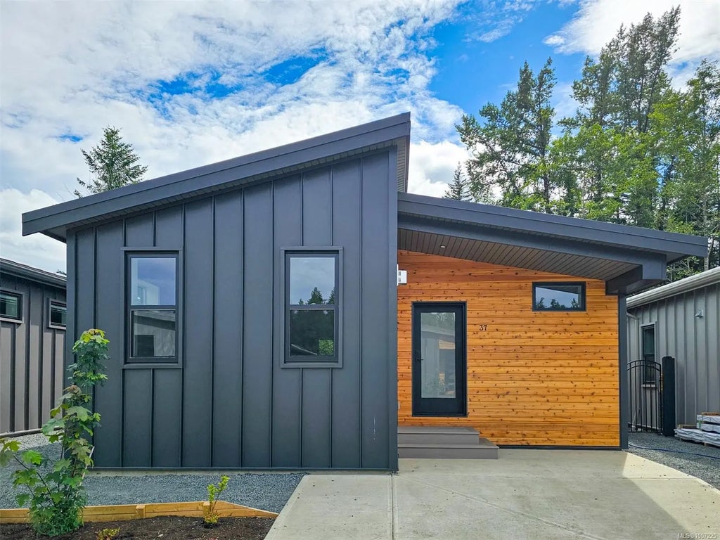 New and Improved, the Northern Flicker is a stunning 2 bed 2 bath home offering incredible value. Spanning over 1,200 sq ft, you'll be impressed with the spacious layout, contemporary design and high end finishings. Turn-key ready with full appliance package, quartz countertops, heat pump, modern kitchen cabinets, large island and well appointed laundry room with storage, sink and quartz countertops. Gas fireplace too! The open concept kitchen-dining-living area is light and airy with soaring 12 ft vaulted ceilings and 7 windows for plenty of natural light. The show stopper is the 14' x 10' covered rear patio, perfect for relaxing with family and entertaining friends. With a metal frame, metal siding and metal roof, maintenance is minimal. Notice the thick 12' walls, high energy performance and low running costs. GST applies. The Flats of Cumberland Is a brand new community of 56 beautiful homes, more Info at www.theflatsofcumberland.ca