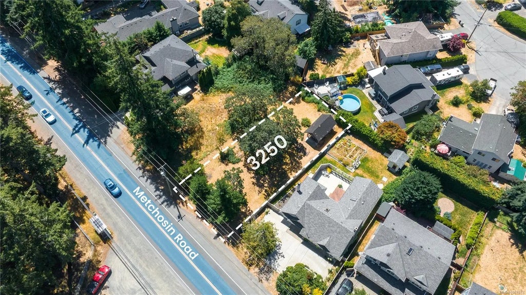 Here is a rare opportunity to own a large flat lot that has mature trees on the perimeter, water and power at the street and sewer just across the street. 3250 Metchosin Rd is a unique large 7551 Sq' level lot in a mature area that has been in the same family since the 60's. This R-1 zoned lot allows for a house with one secondary suite and one accessory dwelling unit. Added bonus, there are 2 sides already fenced with newer fences, a fire hydrant at the front corner of the property and a large tool shed. This is a great opportunity for a builder who wants to build what they want and not have to conform to what a new subdivision will want to see. Property information package is available upon request. Check out the brochure icon below for more property details and a detailed video.