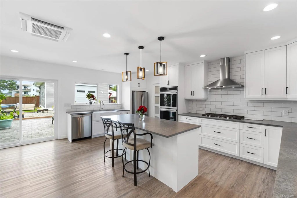More than meets the eye. You will be very impressed when you step into this incredible home that was completely rebuilt in 2021. High end finishes abound. Recessed LED lighting and dimmers throughout the home, heat pumps to offer both heat and air conditioning, heated floors in the ensuite and main baths, hot water on demand and an open plan layout with generously sized rooms. The living room has an attractive feature fireplace and the kitchen is a chef's dream with double wall ovens, gas cooktop, wine fridge, quartz counters and an adjacent pantry room. There are 4 bedrooms and 3 baths. The primary enjoys a huge walk through closet, deluxe ensuite and french doors to the patio. The separate 24 x 30 shop features a mezzanine floor, a 10' door and is wired for the tradesman or hobbyist. There is ample room to park the RV and still room is the fenced backyard to putter. The central location is within a short walk of schools, shops and Parksville's famous sandy beach