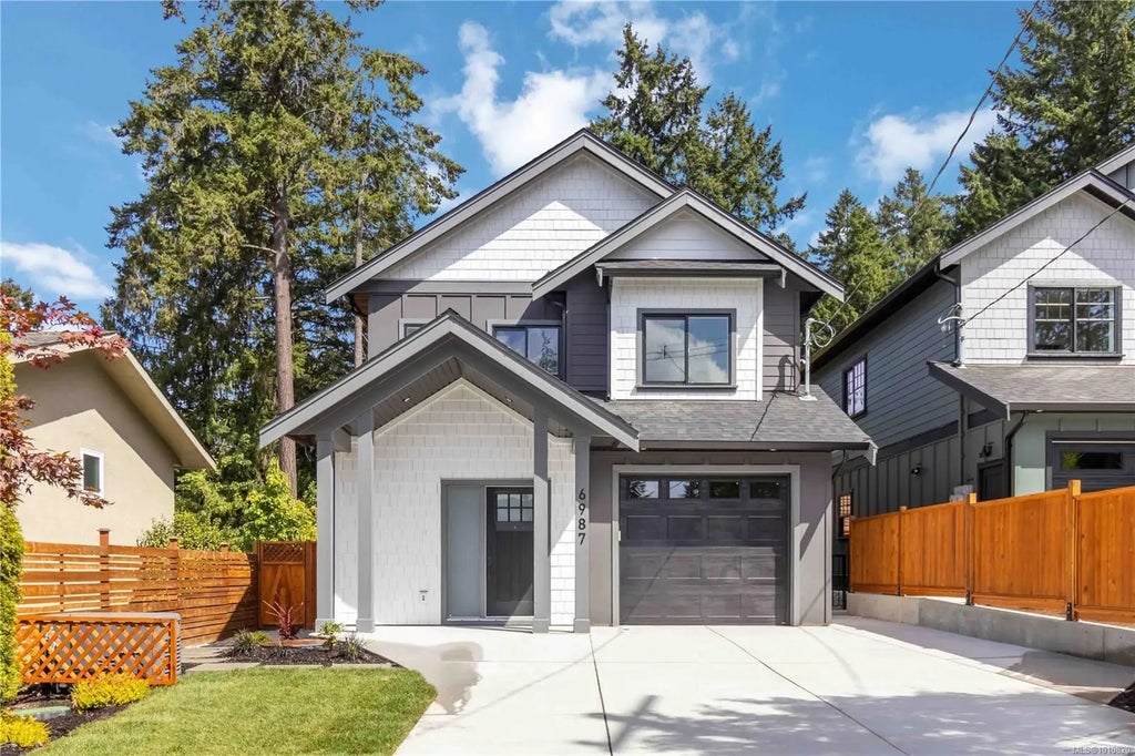 Welcome home to 6987 Hagan Road ~ BRAND NEW 4 Bedroom family home including a 1 Bedroom legal suite. Beautifully designed, featuring an open floor plan with a large entry, spacious living & dining areas with fireplace & french patio doors leading out to the backyard. The gourmet kitchen has stunning quartz countertops and backsplash, large island with built-ins for entertaining plus stainless appliances with a 6-burner gas range. Upstairs offers 3 bedrooms (some ocean glimpses!) including the gorgeous primary suite with walk-in closet and spa-like ensuite with soaker tub, walk-in shower & heated tiled floors. A bonus tv room or office on the lower floor. Efficient heat pump plus a back-up generator. Relax and unwind in the private, fully landscaped irrigated & fenced yard. The 1 bedroom suite is ready for family or a mortgage helper including appliances, in-suite laundry & private entry. Located in a fantastic neighbourhood - close to schools, parks and beach access.