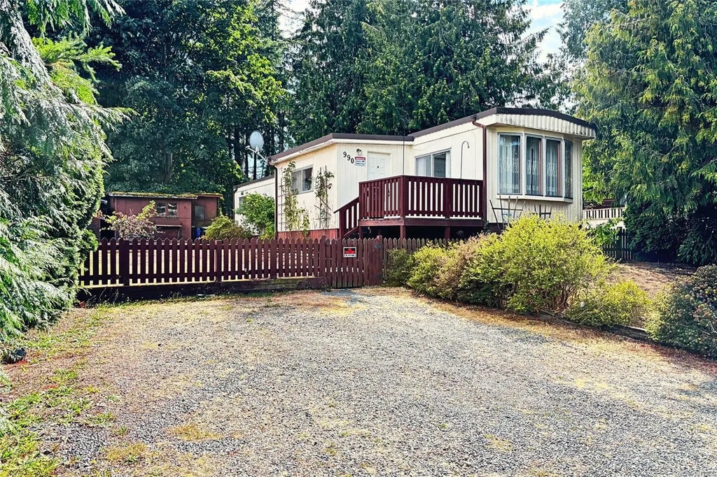 WHY RENT? Own your land – no strata or pad fees! This 2-bedroom, 1-bath, 881 sq ft manufactured home on a .14-acre lot is sold as is, where is and offers an excellent opportunity to create your own vision. The front deck leads to an enclosed porch, perfect for extra storage or a sitting area, and into a bright open-plan living/dining space with a large bay window. The kitchen features ample cabinetry, generous counter space, and a garden-facing window. The primary bedroom has two windows and a small walk-in closet, while the second bedroom is ideal for guests, hobbies, or an office. A 4-piece bath with laundry sits beside a good-sized storage room. Large windows throughout make the home feel airy and light. Outside is a fully fenced yard with a garden shed, workshop, and spacious parking area with RV potential. Minutes to Oceanside Elementary, Wembley Mall, Morningstar Golf, and French Creek Marina. Quick completion possible! Meas. approx.