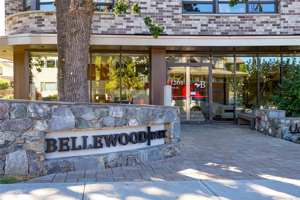 NEW PRICE - Welcome to Bellewood Park, an award-winning community by Abstract, set among majestic heritage Garry oaks on two acres of parkland in historic Rockland. Thoughtfully designed to bring nature to your doorstep, this steel & concrete building offers lasting quality and peace of mind. This Junior 2-bedroom, 2-bath home boasts over 800 sq. ft. of finished living space with hardwood floors, air conditioning, custom closets and a bright open-concept layout. The gourmet kitchen features custom cabinetry, a Wolf gas range, Fisher & Paykel French door refrigerator and double-drawer dishwasher. The spacious primary includes a walk-in closet, while the spa-inspired bathroom offers in-floor heated tile. Step outside to your private heated balcony for outdoor enjoyment year-round. Pet friendly, with secure underground parking, storage locker, bike & kayak areas. Walk to downtown restaurants, Cook Street Village and Dallas Road to enjoy ocean views and seaside paths.