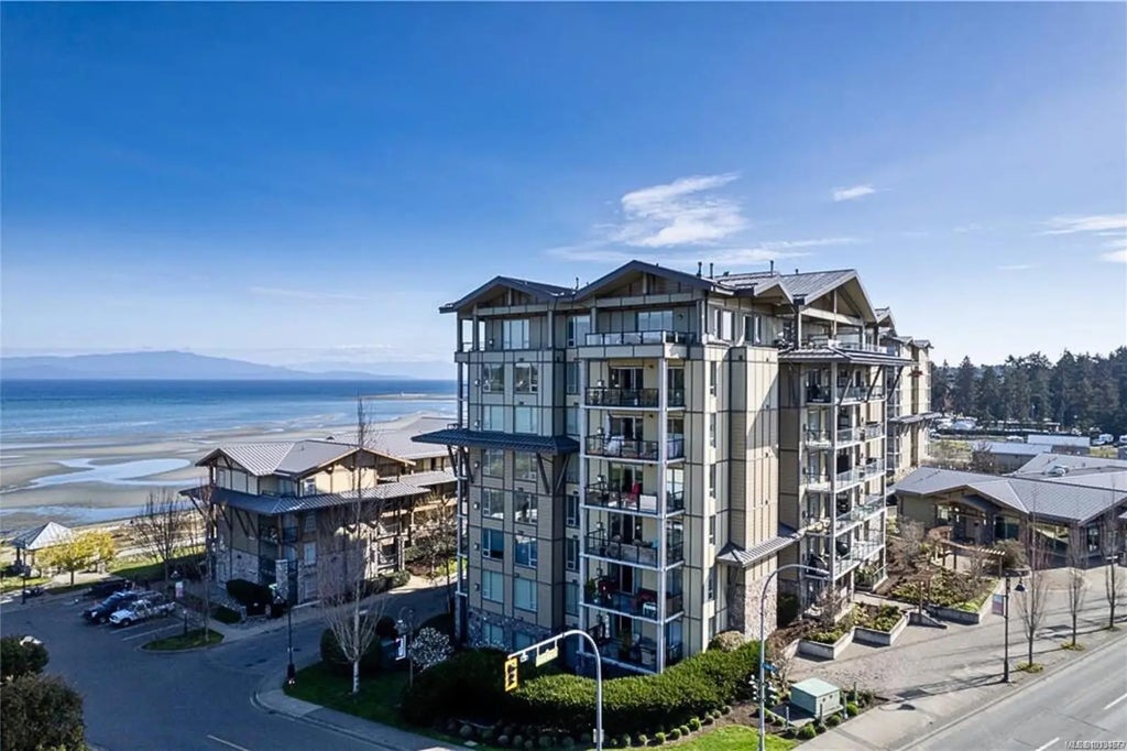 Live steps from the ocean at The Residences at The Beach Club! This spacious 1 bed/1 bath, 613 sq ft condo with full ownership offers year-round comfort and convenience just moments from Parksville Beach and the boardwalk. Inside, 9-ft ceilings, hardwood floors, and oversized sliding doors create a bright, open feel. The kitchen features granite countertops, stainless appliances, ample cabinetry, and a large eating bar perfect for casual dining. The living room includes a cozy gas fireplace and opens to a large private patio with a privacy screen, city views, and a gas BBQ hookup. The generous-sized primary bedroom has a compact walk-in closet, while the bathroom is small but stylish with a tub/shower combination. A convenient in-suite laundry is included. Secure concrete and steel construction with underground parking and storage. Resort-style amenities include a pool, hot tub, sauna, and fitness center. Walk to shops, cafes, and restaurants. Meas. approx.