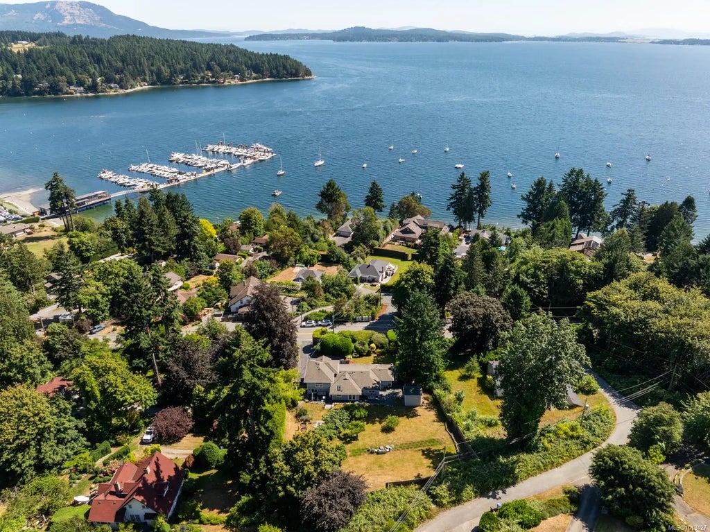 Ocean View + total privacy in prime location of highly desirable Mill Bay, Cowichan Valley. Gorgeous 3-bed/2-bath home, fully reno'd in 2011 - steps to beach. Peaceful & private w fantastic flr plan, french doors out to front & back, 2 heat pump, 2 fireplace, skylight, hdwd flr, designer lighting, built-ins, wainscoting. Kitchen overlooks private landscaped, fully fenced yard. Wrap-around gated deck. $100K+ in luxury updates (2023) including almost 600sqft, spa-inspired primary bed/bath w cork underlay, wool-blend carpet, radiant bath, soaker tub, triple-pane windows & custom wardrobe. Views of orchard & ocean. Heated 2 car garage + RV/boat, whole-home water softener, insulated crawlspace w fan. Large outbuilding w sub-panel—ideal office/gym/shop. Sensor lighting & irrigation. Enjoy morning coffee + sunset paddle w short walk to beach, pier, marina, Brentwood College & amenities. City approval option to connect sewer. Potential for secondary dwelling w ocean views. 30 min to Victoria.