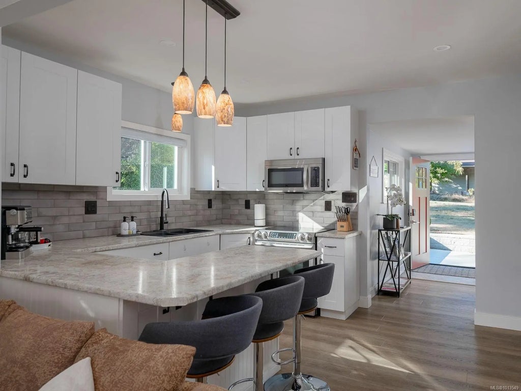 An exceptional opportunity for multi-family living or rental income—this one-acre South Wellington, property offers two updated homes, a workshop, and flexible space to suit your needs. The main home features nearly 2,000 sq ft with 4 beds, 2 baths, new flooring, fresh paint, a bright oak kitchen, and spacious living/dining opening to a large deck. Potential for guest or in-law suite. The fully renovated 2-bed cottage includes a spa-style bath with heated penny-tile floors, modern kitchen with stainless appliances, and heat pump—ideal for extended family or rental. Extras: EV charger, ample RV/toy parking, fenced yard, garden space, and a fully equipped workshop. Rural charm meets modern living—book your showing today!