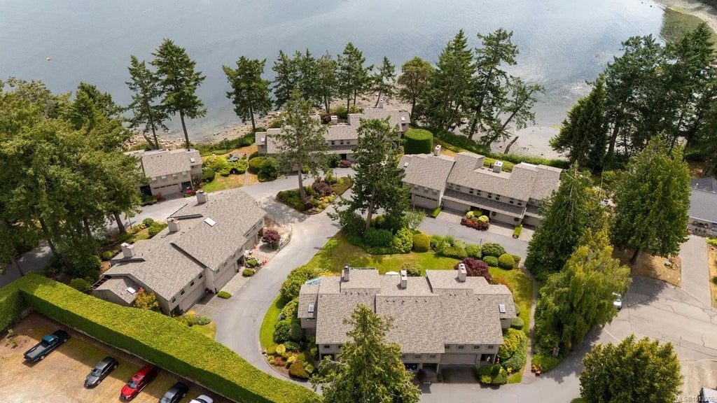 Open House Sat - 1-3pm - Welcome to Turgoose Point Estates—an oceanside gem offering stunning views, private beach access & lush manicured gardens. This updated 3BD/3BA, 1935 sq ft end-unit townhome boasts panoramic ocean vistas while remaining sheltered from cool sea breezes—ideal for morning coffee on the balcony. Inside, enjoy a beautifully remodelled galley kitchen w/ granite counters, s/s appliances, glass tile backsplash & cozy breakfast nook. Natural light floods the home, enhanced by hardwood floors, 15' vaulted ceilings & a charming wood-burning fireplace. Updated baths add a modern touch. Step onto the sunny patio surrounded by vibrant year-round blooms. The attached 2-car garage provides ample storage. Located minutes to Sidney, BC Ferries, airport & Victoria. Stroll to shops, dining, Lochside Trail & Panorama Rec Centre. A perfect blend of serenity, nature & luxury—vacant & ready for immediate possession. Move in today & start living your coastal dream!