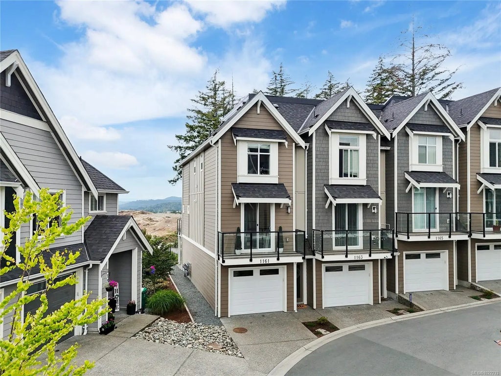 Welcome to 1161 Moonstone Loop in Bear Mountain’s South Point community! This bright 2 Bed, 3 Bath END UNIT townhouse offers stunning mountain views and a flexible, open-concept layout. The chef-inspired kitchen features stainless steel appliances, two-tone cabinetry, and a spacious island. The living and dining areas can be arranged to suit your lifestyle—dine by the fireplace or relax and enjoy the view. Upstairs, a bright skylight adds natural light, and the primary suite offers oversized closets and a spa-like ensuite with radiant floor heating and a glass shower. The second bedroom also includes its own ensuite, and a full laundry room is conveniently located upstairs near both bedrooms. Enjoy two private balconies and a low-maintenance backyard. The tandem double garage provides parking, storage, or space for a gym/office with its own entrance. Just one minute to the highway for a quick Victoria commute!