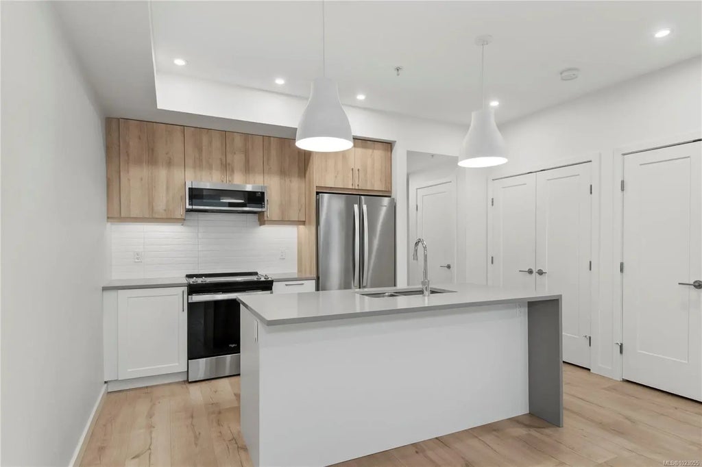 Vacant and Ready for quick possession! Come and enjoy unobstructed ocean views over Quadra Island and Discovery Passage from this top-floor, modern 1-bedroom, 1-bathroom condo is perfect for downsizing or embracing a care-free lifestyle. The bright, open layout flows onto a spacious covered balcony where you can soak in panoramic water views. High-end details include quartz countertops, stainless steel appliances, electric blinds, heated bathroom floors, in-suite laundry, heat pump with air conditioning, and secure underground parking. The building features bike storage, an amenity room, and a shared community patio. Take the nearby Seawalk trail to enjoy restaurants, shopping, and waterfront strolls. Book your showing today!
