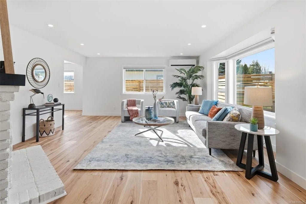Open House Sun March 8 2:00-3:30. Welcome to this immaculate, contemporary rancher in sought-after Lochside Estates, offering over 1,400 sq ft of fully renovated living space complemented by a double garage, private patio, and dedicated gardening area. Thoughtfully reimagined throughout, the home features engineered wide-plank hickory flooring, a refined modern kitchen with quartz countertops and new appliances (w/5 yr warranties), and bright bathrooms with continuous floor to shower tile and quartz surfaces. Set in a quiet corner of this distinct cul-de-sac, the home enjoys excellent privacy, sunny exposure, raised garden beds, and a newly fenced patio—ideal for outdoor enjoyment. Just one block from a waterfront park with walking trails, and conveniently close to Sidney, the Lochside Trail, the airport, ferry terminal, and Saanich Peninsula Hospital, this is an exceptional Peninsula location with both tranquility and accessibility.