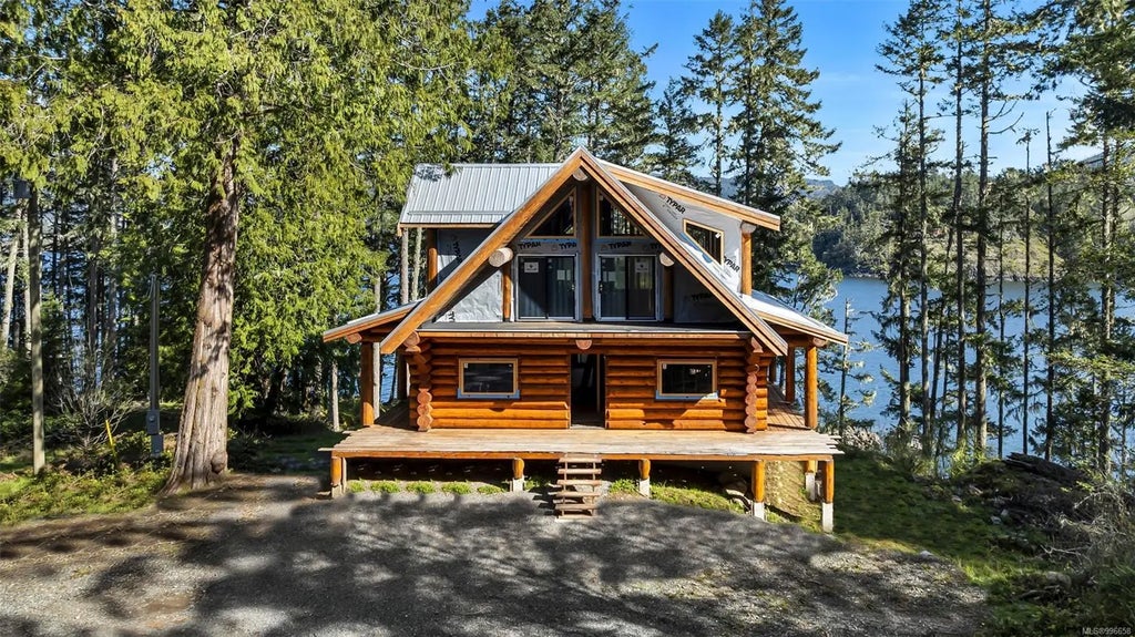 This extraordinary private park-like 5-acre oceanfront in East Sooke offers a rare walk-on beach - ideal for swimming and kayaking. Enjoy complete serenity while taking in breathtaking sunsets over Sooke Basin. The 2,100 sq ft 4-5 bdr 3 bthr luxury log home is built to lock-up with interior framing complete, has soaring 16' vaulted ceilings, expansive wood windows with sweeping ocean views, a wrap-around deck and balconies to all upstairs. All work guaranteed under new home warranty. Come and finish the home to your desires putting your mark on this extraordinary property. The offering includes shared ownership of 60+ acres of preserved pristine park-like forest with a stream and a pond, and a 1/7 of a separate fee-simple 10-acre lot with merchandisable lumbers. Just 40 min to Victoria, 30 to VGH, and 20 to Sooke and Langford. An irresistible opportunity to create a family estate, seasonal retreat, or legacy home.