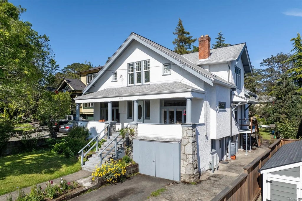 Unlock the potential of this legal triplex in Victoria’s sought-after Oaklands neighbourhood. Nestled on a peaceful, tree-lined street Brimming with character and showcasing views of the Olympic Mountains, this property is an exceptional find for savvy investors or those seeking flexible multi-generational living. Set on a spacious lot, the home offers two well-designed 1-bedroom suites on the main floor, ideal for rental income or extended family. The upper-level 2-bedroom suite features a stylish open-concept kitchen—perfectly updated for modern living. Each unit is self-contained, offering privacy and strong rental appeal. The gorgeous backyard has space for gardening, children, or pets or relaxing. Just minutes from Fernwood Village, parks, transit, and top-rated schools, this is a prime location with strong tenant demand. Whether you live in one unit and rent the others this is a turnkey opportunity with serious income upside in one of Victoria’s most beloved communities.