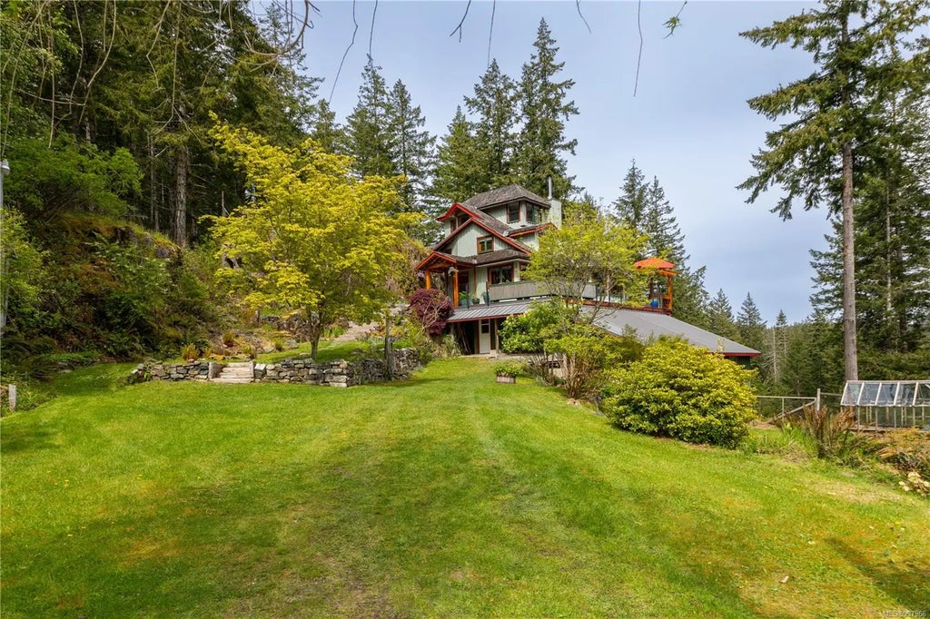 Perched high in the treetops sits this post and beam home. Filled to the brim with all the quintessential charm you imagine for a Quadra Island home. Enter past the gates, established gardens, greenhouse, granite bluff and water feature. The great room concept boasts vaulted ceilings, fir trim/floors/doors. Chefs kitchen with granite counters, stainless gas stove, kitchen pantry, opening to the outdoor kitchen. The main floor has a beautiful bathroom with claw foot tub, heated tile floors and access to the outdoor bathroom with hot water shower & tub. The 2nd floor features 2 bedrooms, 3 piece bathroom, family room (murphy bed), outdoor sleeping loft and office. The top floor is the private, king-sized primary with walk-in closet/ensuite. Access to the basement from the staircase on the main floor or separate entrance and is plumbed for a bathroom. Attached workshop & garage. 3 driveways, 3 cleared possible building sites. 1 bed cabin off the 3rd driveway (1827 Hyacinthe Bay Rd).