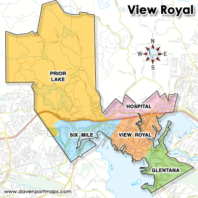 The town of View Royal was incorporated in 1988 and encompasses 1,007 hectares (2,488 acres) of land and 253 hectares (626 acres) of foreshore and land covered by water. View Royal lies at the doorstep of Greater Victoria's urban core and adjacent to the established municipalities of Esquimalt and Saanich.